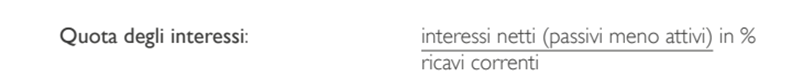 - La Quota delle spese per interessi (interessi netti / ricavi correnti)