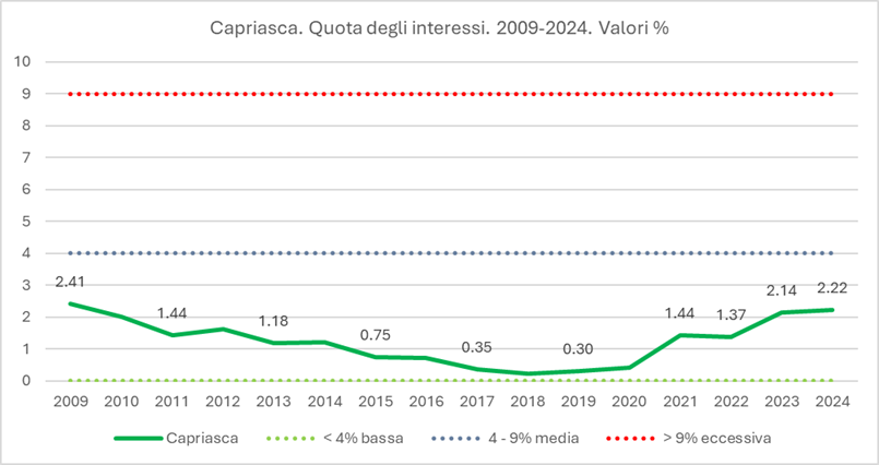 | Quota degli interessi | 2009 | 2010 | 2011 | 2012 | 2013 | 2014 | 2015 | 2016 | 2017 | 2018 | 2019 | 2020 | 2021 | 2022 | 2023 | 2024 |